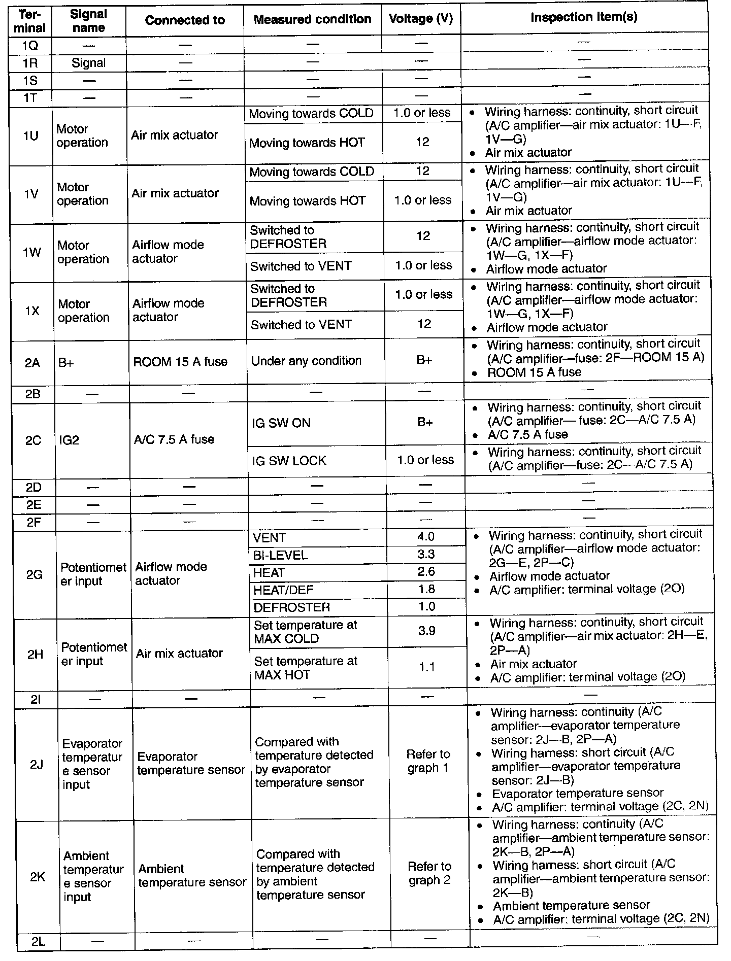 - If the parts under "Inspection item(s)" are found to be normal, replace the A/C amplifier.