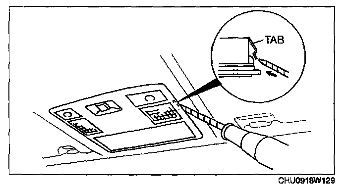 1. Insert a tape-wrapped flathead screwdriver into the gap between the headliner and the map light.
