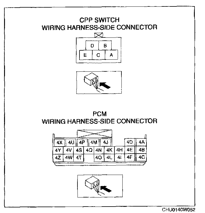 CLUTCH PEDAL POSITION (CPP) SWITCH INSPECTIONNOTE: Before performing the following inspection, make sure to follow the troubleshooting flowchart. (See FOREWORD) Flow of Diagnosis