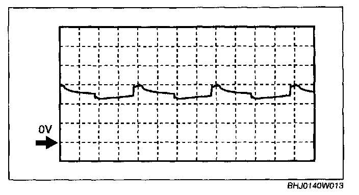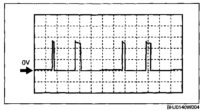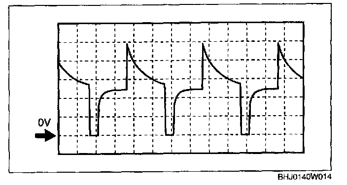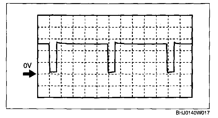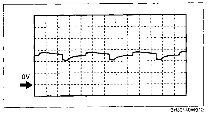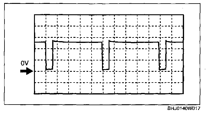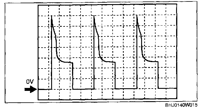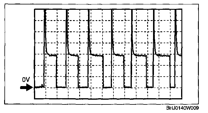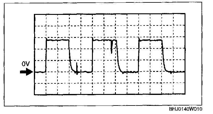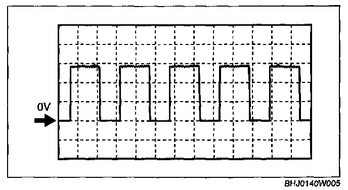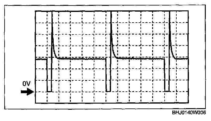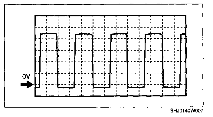 Inspection Using An Oscilloscope (Reference)NOTE: The duty ratio for the wave pattern can vary with the control conditions. Therefore determine comprehensively where the malfunction occurs among the input systems, output systems, and the PCM,