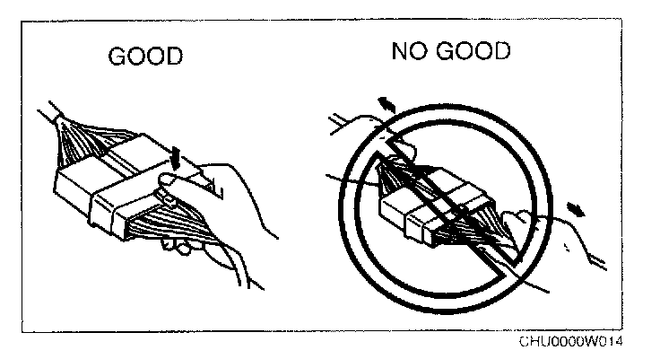 - When disconnecting connector, grasp the connectors, not the wires.