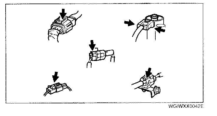 - Inspect the terminals of waterproof connectors from the connector side since they cannot be accessed from the wiring harness side.