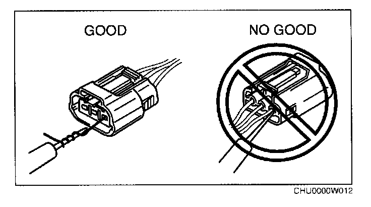 CAUTION: To prevent damage to the terminal, wrap a thin wire around the tester probe before inserting into terminal.