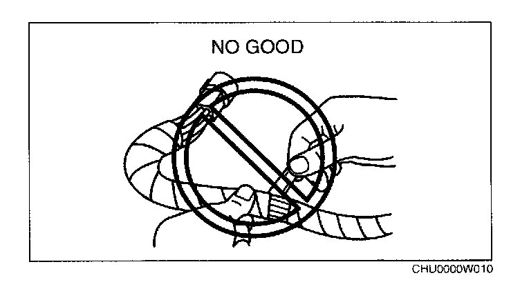 Wiring harness- To remove the wiring harness from the clip in the engine room, pry up the hook of the clip using a flathead screwdriver.