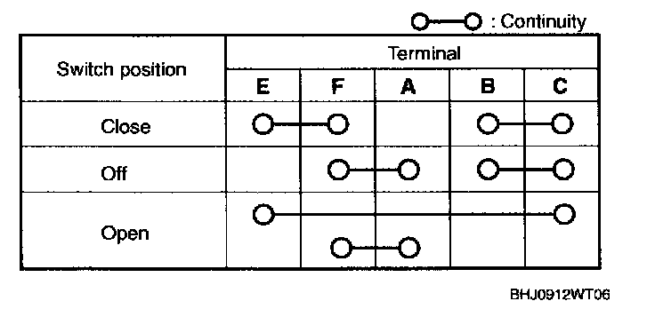 - If not as indicated in the table, replace the power window subswitch.