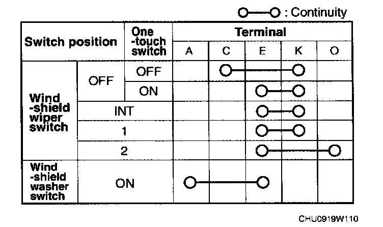 - If not as indicated in the table, replace the windshield wiper and washer switch.