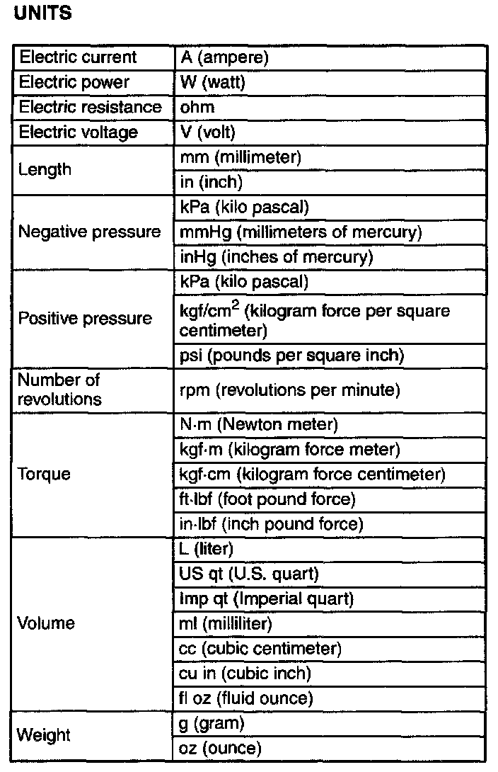 - When the data indicates upper and lower limits, the converted values are rounded down if the SI unit value is an upper limit and rounded up if the SI unit value is a lower limit. Therefore, converted values for the same SI unit value may differ after conversion. For example, consider 2.7 kgf/sq.cm in the following specifications.