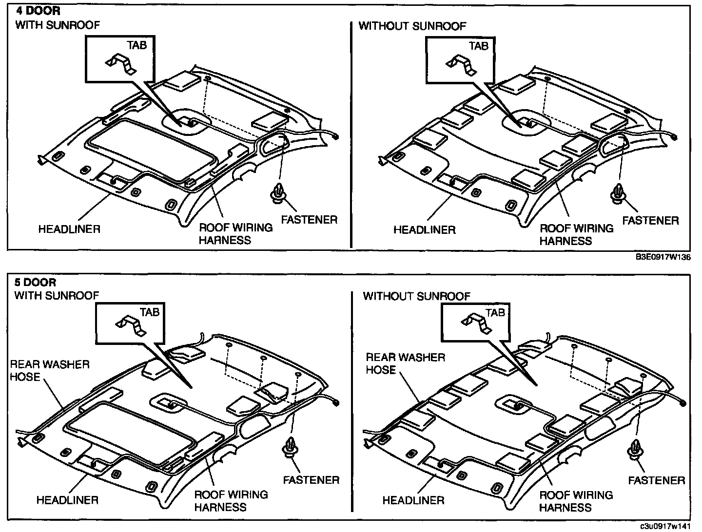 HEADLINER REMOVAL/INSTALLATION1. Shift to the D (ATX) or 4th gear (MTX) position. (4 door)
