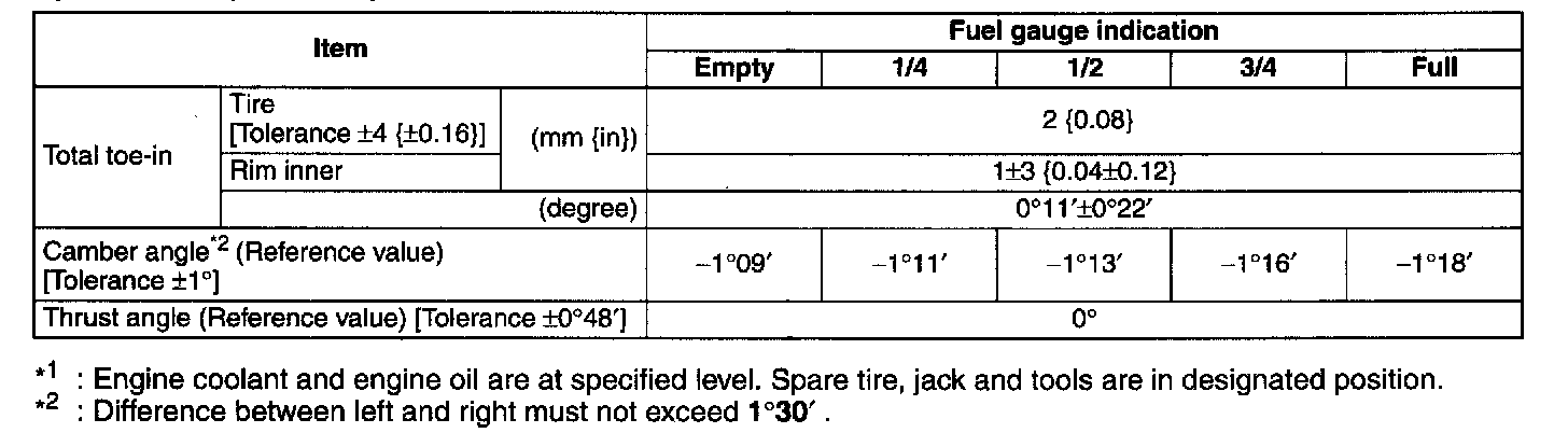 REAR WHEEL ALIGNMENTSpecification (Unloaded)*1
