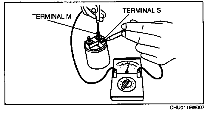 1. Inspect for continuity between terminals S and M using a tester.