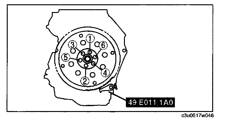 5. Tighten the drive plate mounting bolts in two or three steps in the order as shown in the figure.