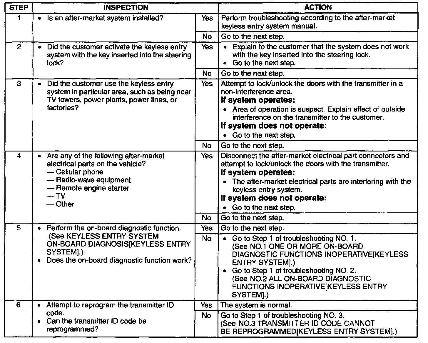 KEYLESS ENTRY SYSTEM PRELIMINARY INSPECTION[KEYLESS ENTRY SYSTEM]