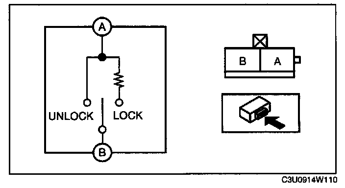 Inspect for continuity between the door lock switch terminals using an ohmmeter.