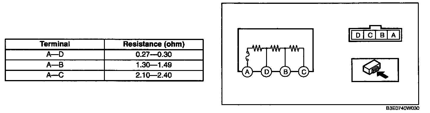 Verify that the resistance between the resistor terminals is as shown in the table.
