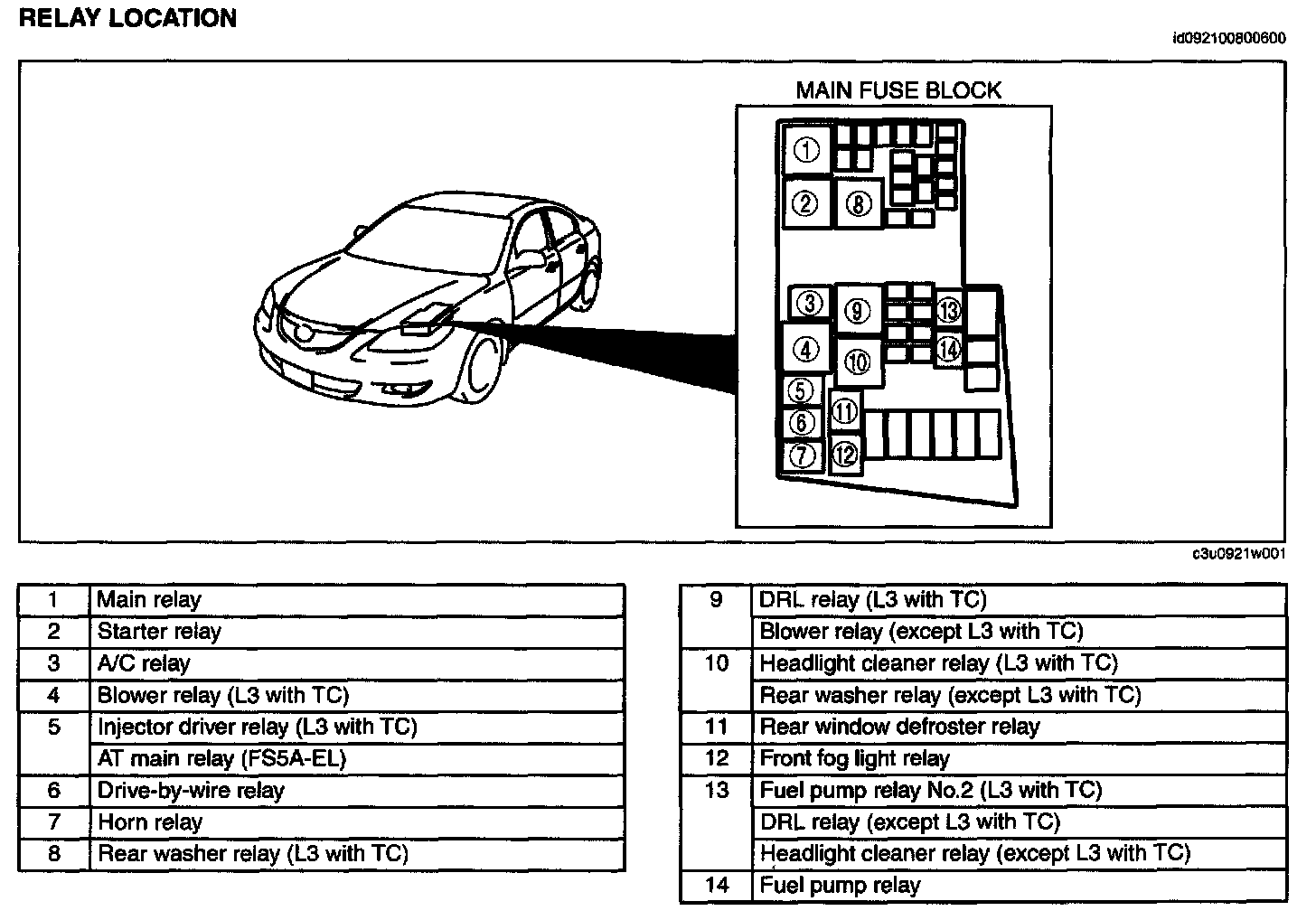 Main Relay (Computer/Fuel System): Locations