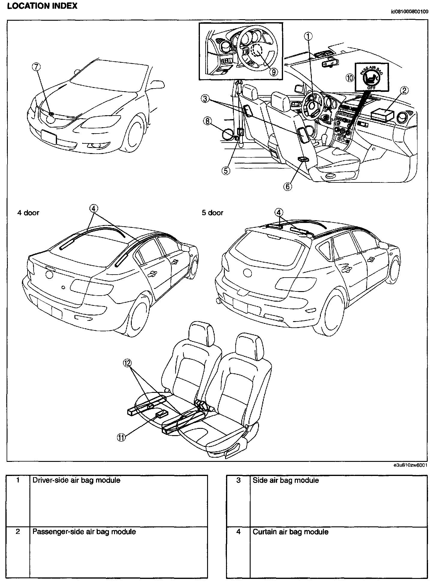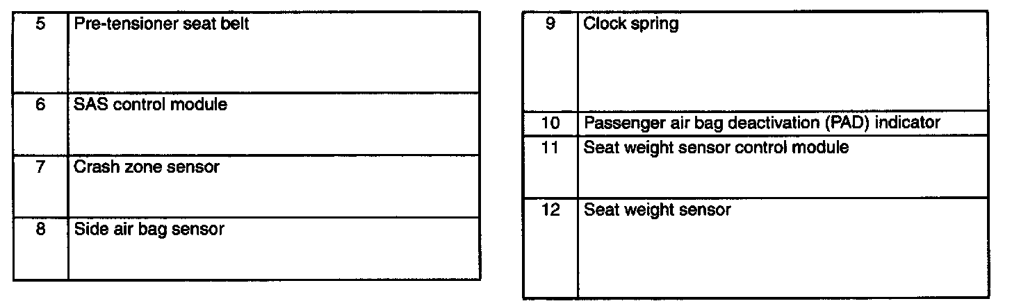 Air Bag System Location Index: