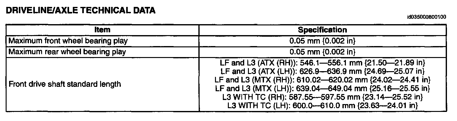 DRIVELINE/AXLE TECHNICAL DATA