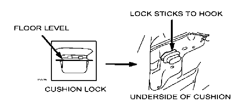 2. Inspect the underside of the seat cushion. If the lock remains attached to the rear seat cushion hooks when the cushion is removed, go to next step.