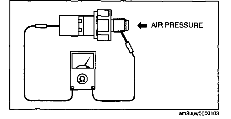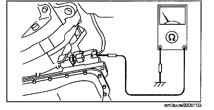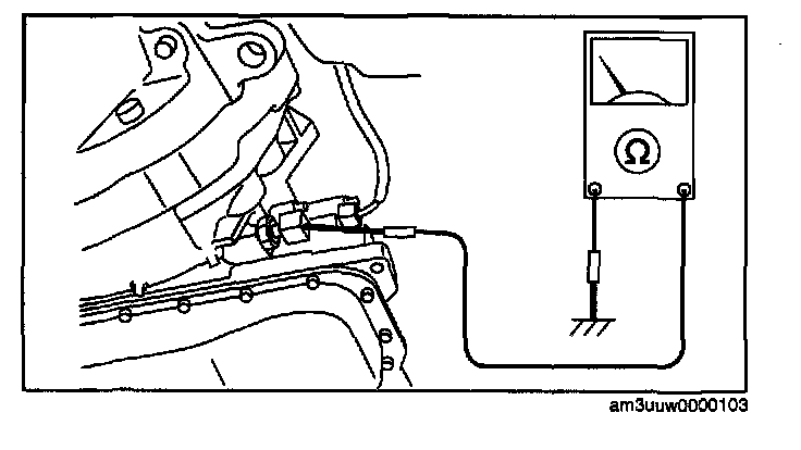 9. Verify that there is continuity between oil pressure switch terminal and ground. If not as specified, replace the oil pressure switch.
