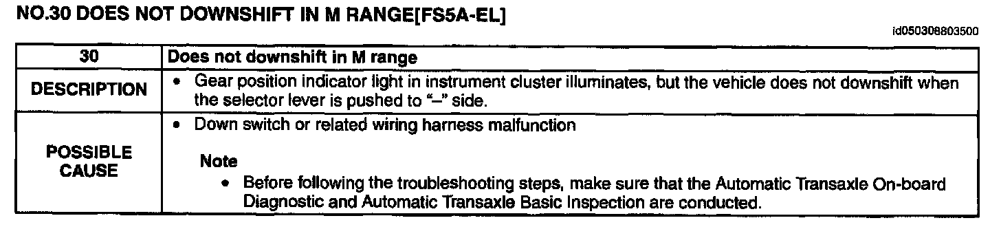 NO.30 DOES NOT DOWNSHIFT IN M RANGE [FS5A-EL]