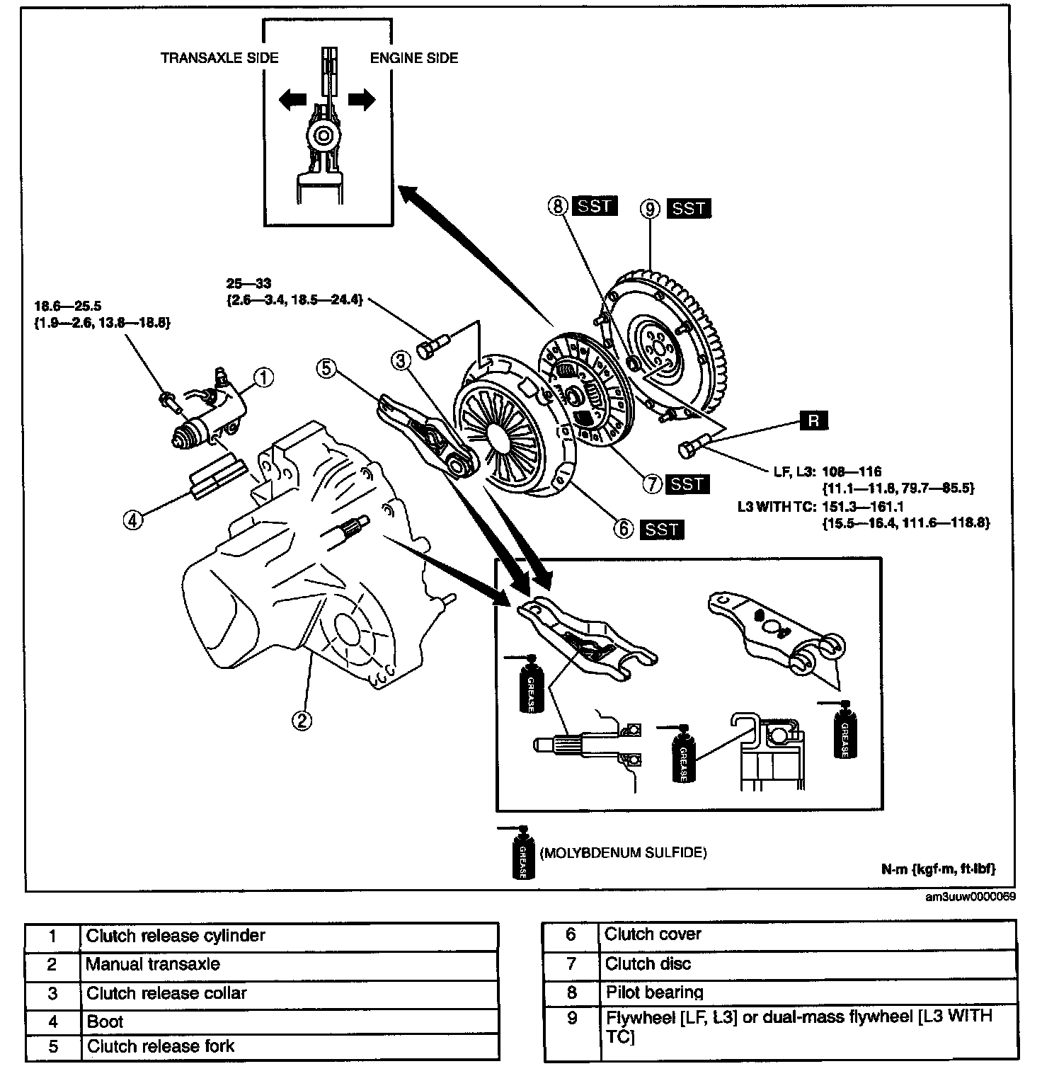 L3 WITH TC: 151.3 - 161.1 N-m (15.5 - 16.4 kgf-m, 111.6 - 118.8 ft-lbf)
