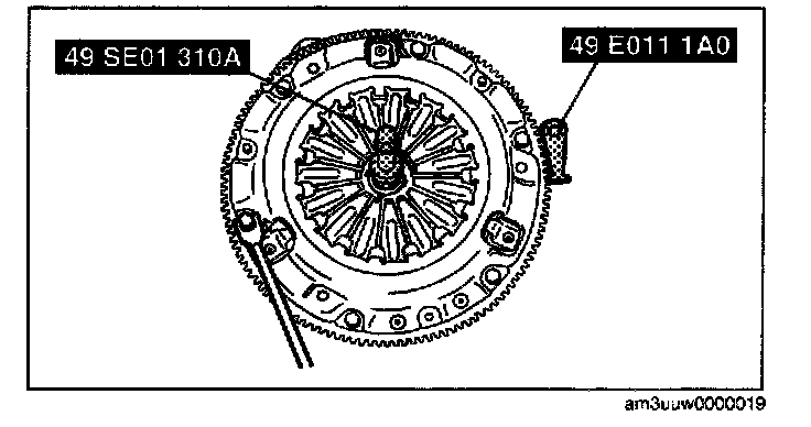 1. Hold the clutch disc position using the SST.