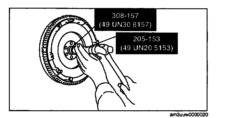 4. Inspect for oil leakage from the crankshaft rear oil seal. If there is any malfunction, replace the crankshaft rear oil seal.