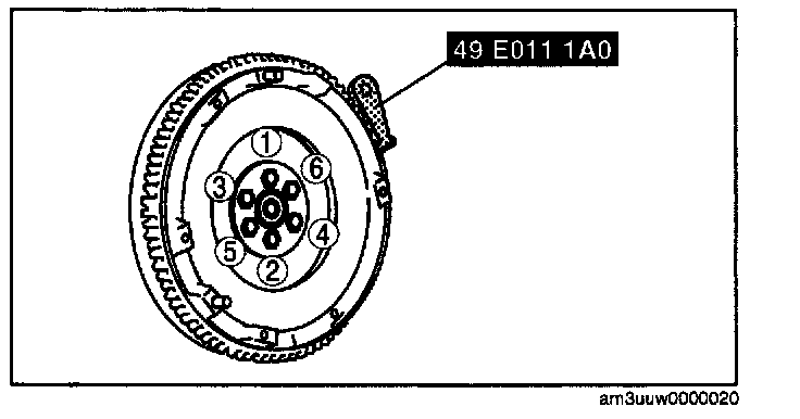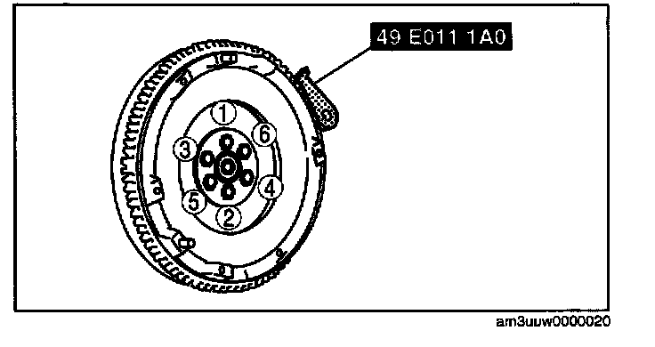 5. Gradually tighten the flywheel lock bolts or dual mass flywheel lock bolts in a crisscross pattern.