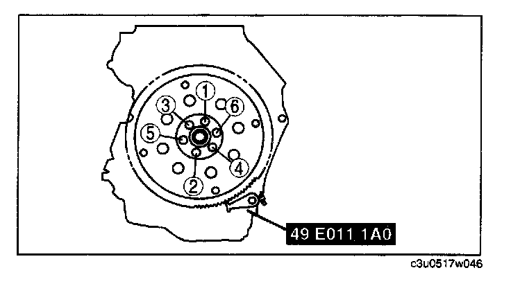5. Tighten the drive plate mounting bolts in two or three steps in the order as shown in the figure.
