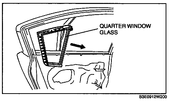 REAR DOOR QUARTER GLASS REMOVAL/INSTALLATION1. Disconnect the negative battery cable. (Vehicles with power window system)