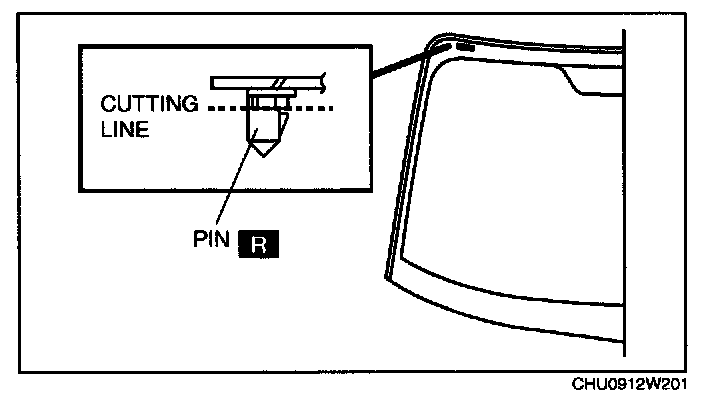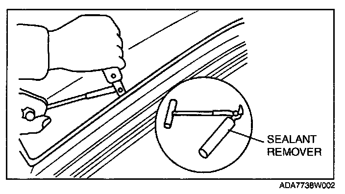 NOTE: For the areas to the sealant that are difficult to cut, use the piano wire and follow the procedure under "Reusing Windshield".