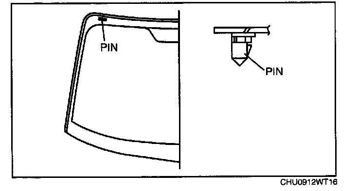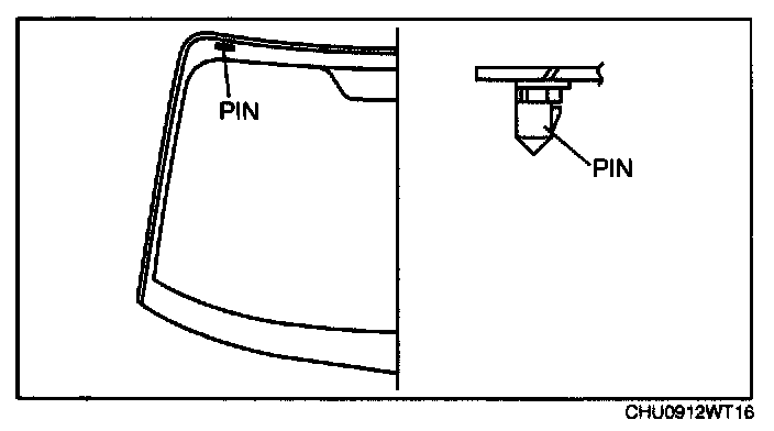 7. Mark the seating positions of the pins and remove the pins from the windshield.