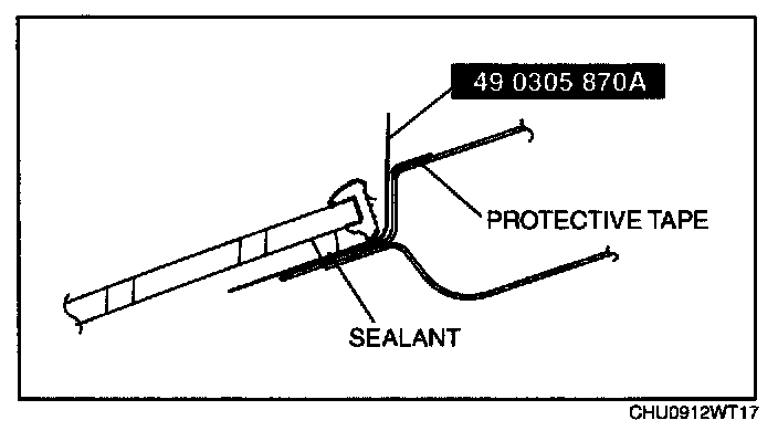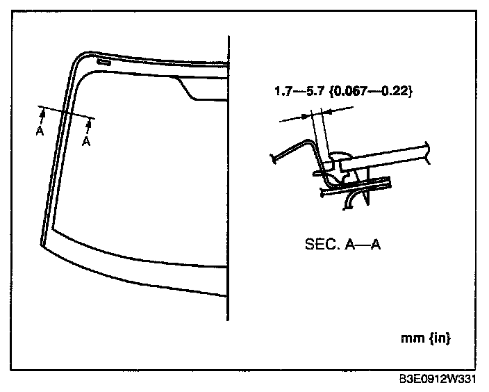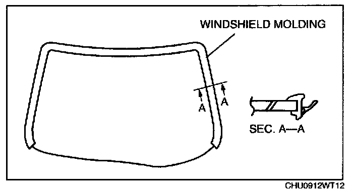 NOTE: Before removing the windshield from the body, mark the position of the windshield by affixing tape to the windshield and body panel.