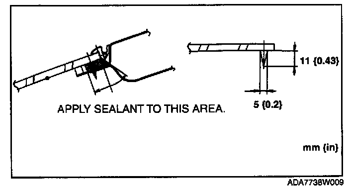 2. If the sealant has come off completely in any one place, apply some primer after degreasing, and allow it to dry for approx. 30 min. Then apply a 2 mm (0.08 in) thickness of sealant.