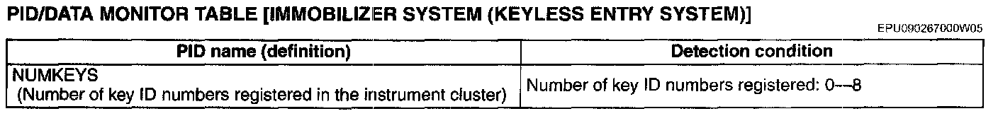 PID/DATA MONITOR TABLE [Immobilizer System (Keyless Entry System)]: