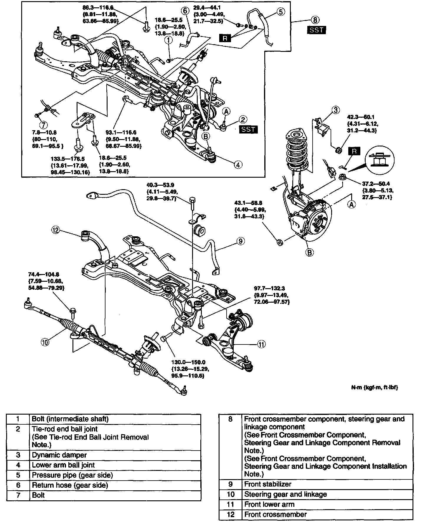 Front Crossmember Component, Steering Gear and Linkage Component Removal Note