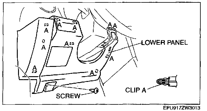 6. Pull the lower panel outward and detach clips A.