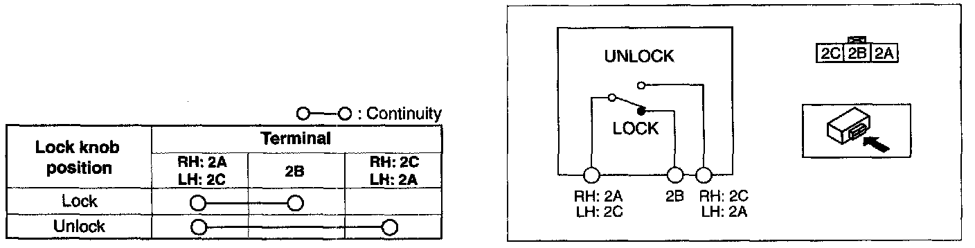 1. Inspect for continuity between the door lock-link switch terminals.