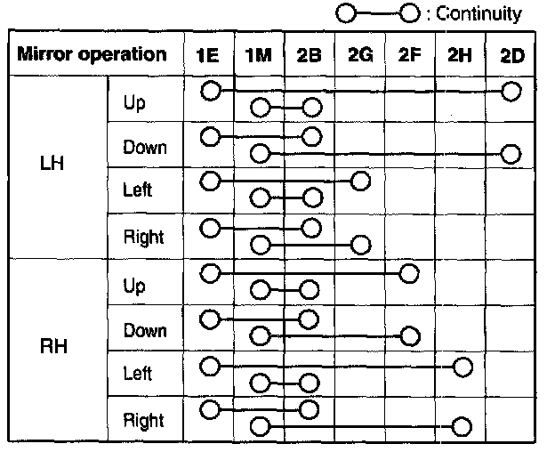 If not as indicated in the table, replace the power outer mirror switch.
