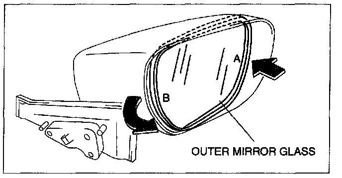 REMOVAL1. Press area A of the mirror glass so that area B moves outward.