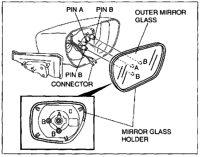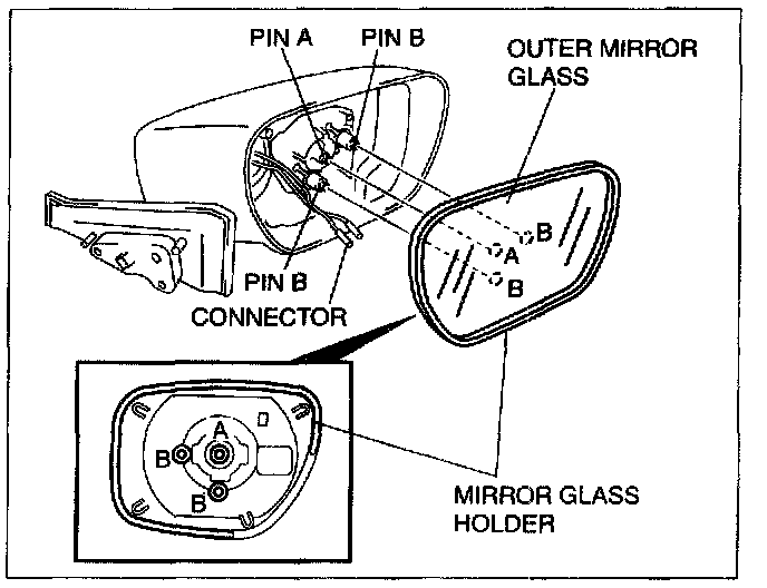 3. Pull the mirror glass holder and remove pins B.