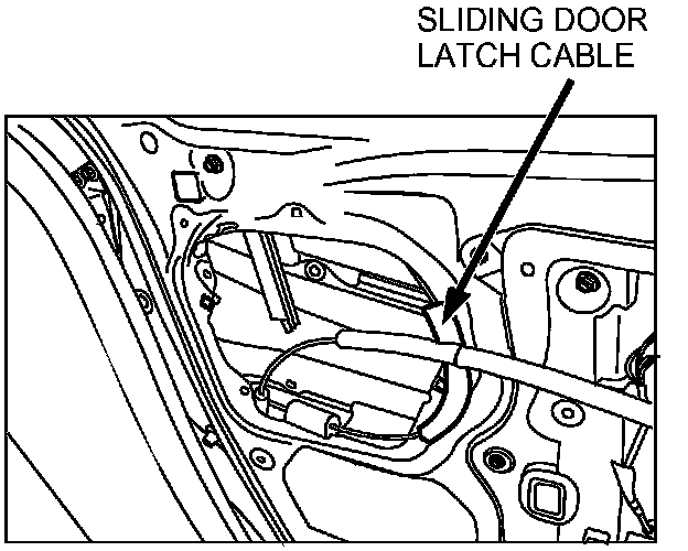 17. Place the sliding door latch cable in the sliding door service hole so it prevents the open lock actuator release cable from rubbing against the exterior of the vehicle when opening the sliding door.