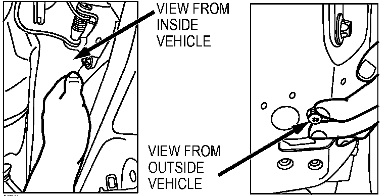 22. With one hand (right hand on the driver's side and left hand on the passenger's side), reach into the service hole and hold the sliding door latch in place.
