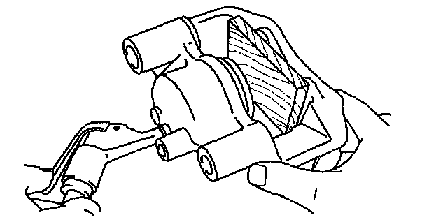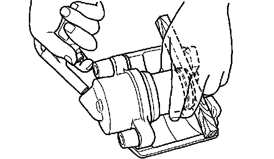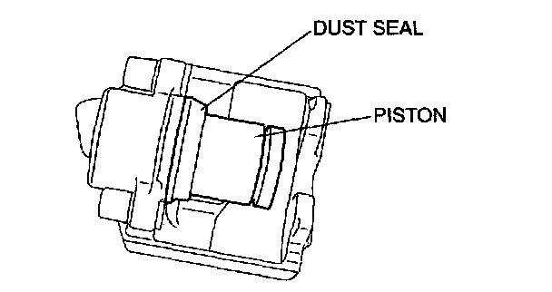 Warning: When blowing compressed air into the caliper body, the piston may pop out and cause injury if not supported at the correct point. Securely support the piston friction surface by hand when blowing compressed air.