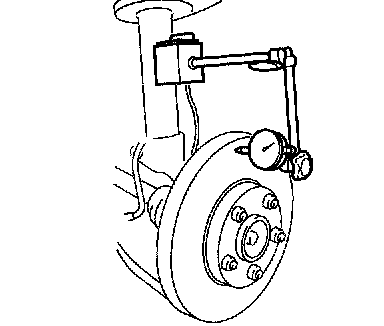 2. After tightening all the hub nuts to the same torque, put the dial gauge on the friction surface of the disc plate 10 mm (0.39 inch) from the disc plate edge.