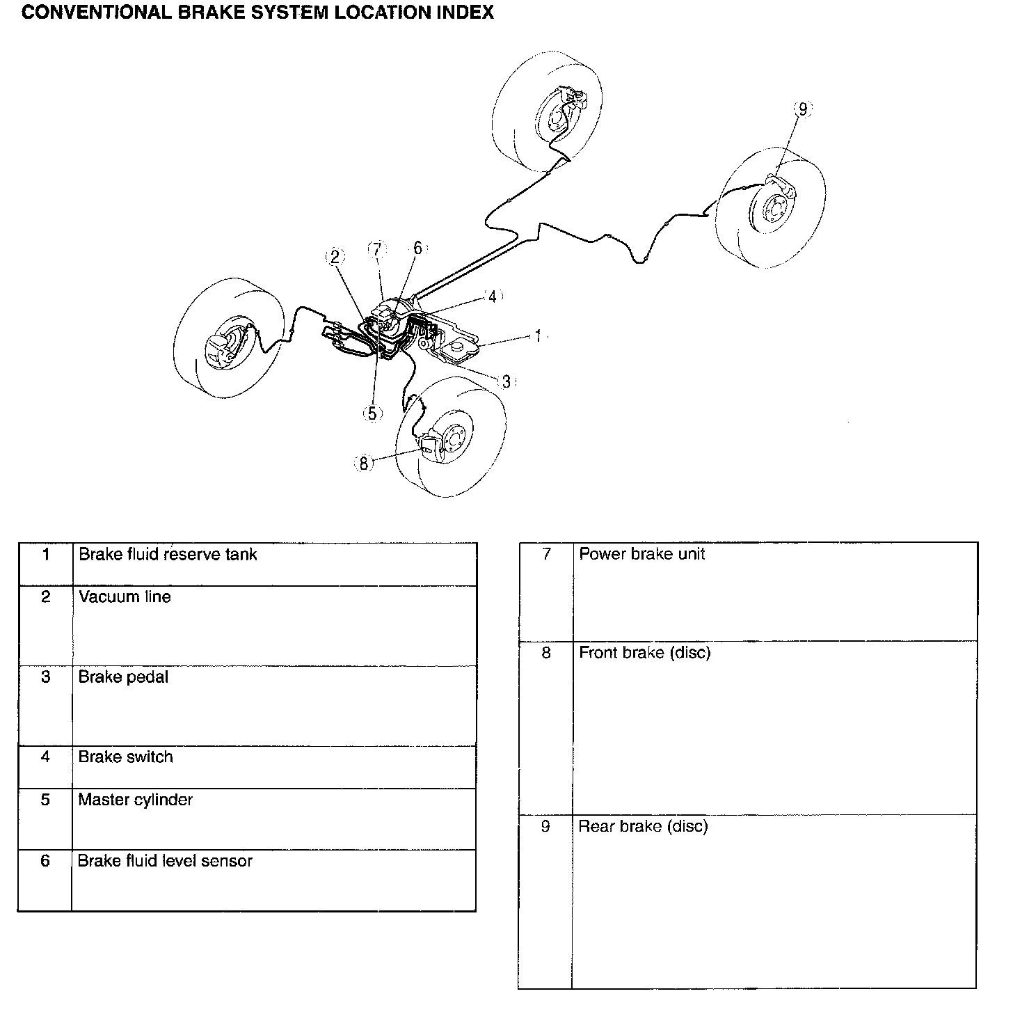 CONVENTIONAL BRAKE SYSTEM LOCATION INDEX: