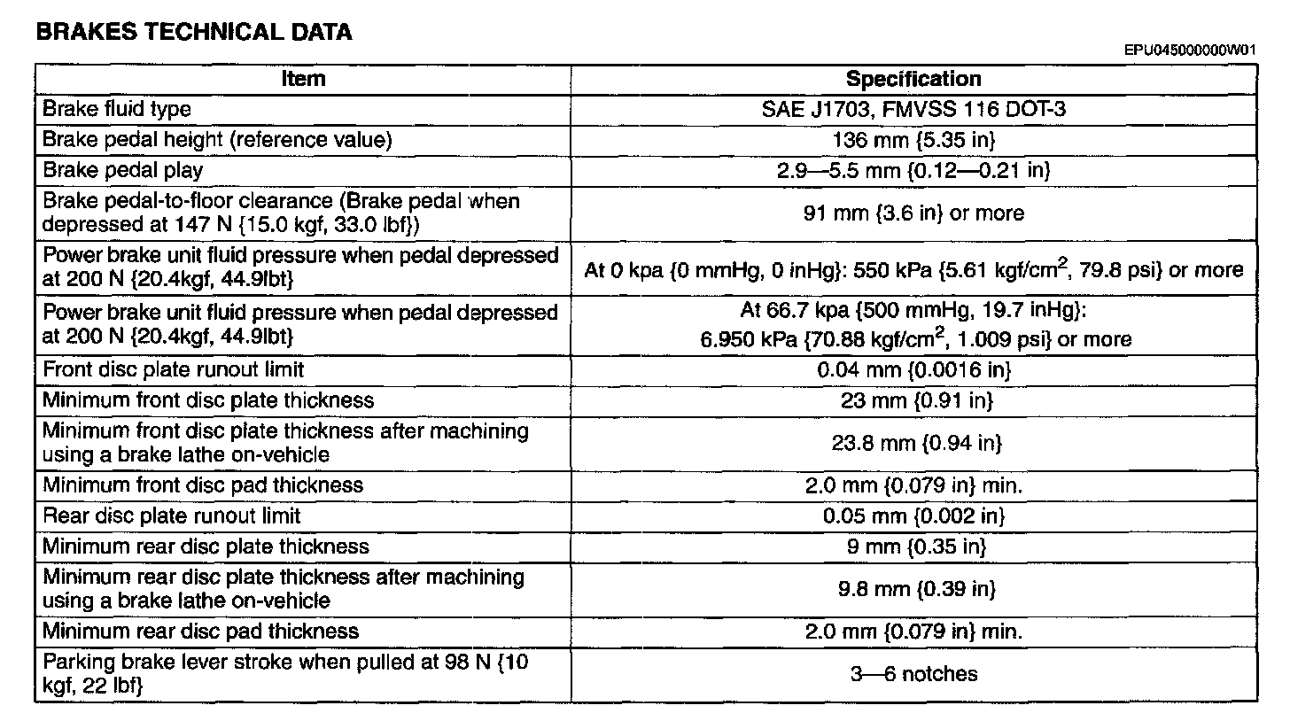 BRAKES TECHNICAL DATA: