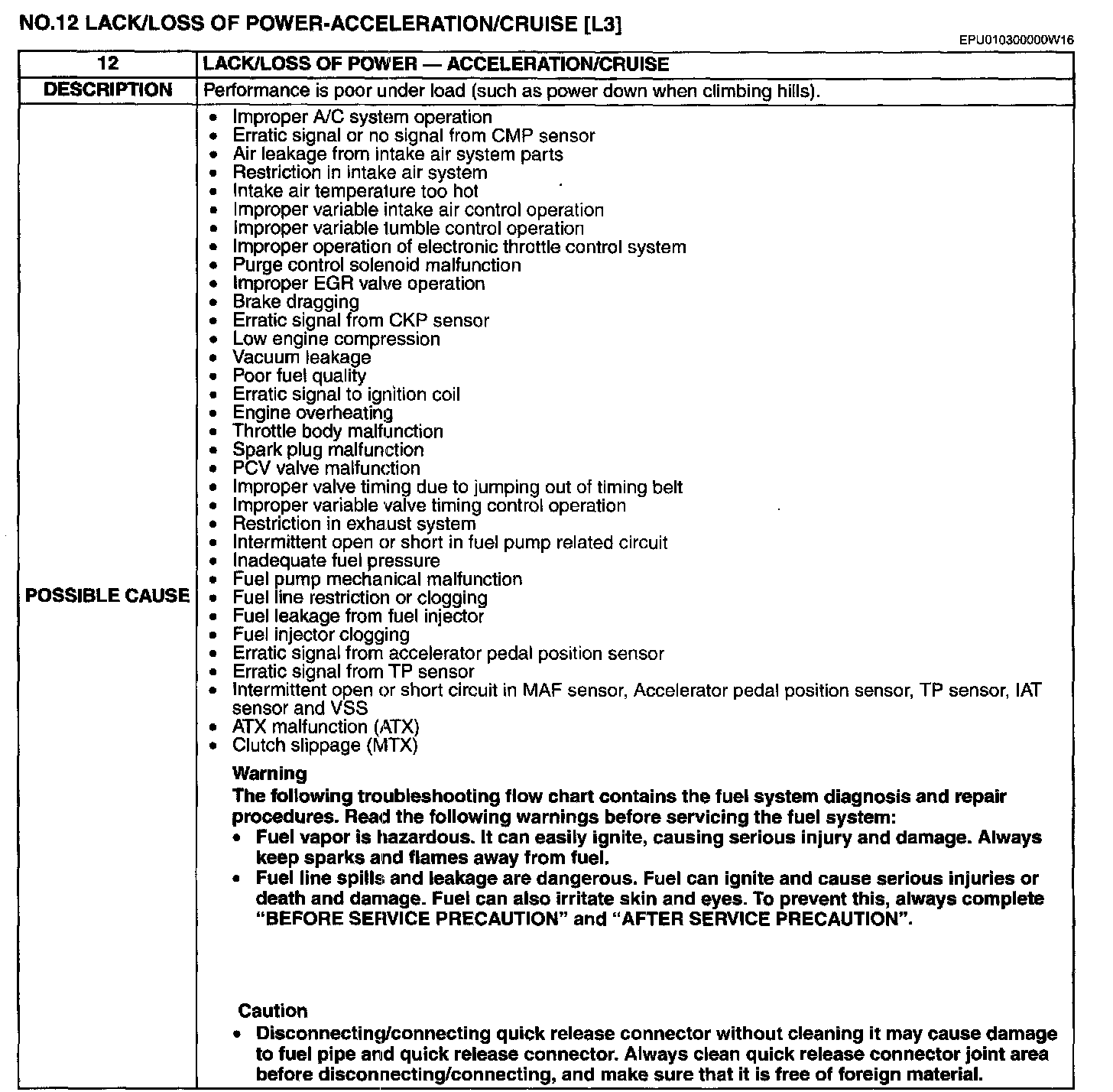 Lock/Loss of Power - Acceleration/Cruise