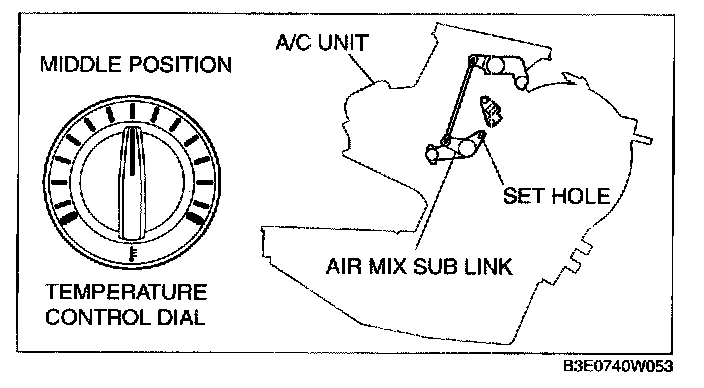 CAUTION: If the air mix wire is set without first fixing the air mix link position, it is possible that the air mix door cannot be switched normally.