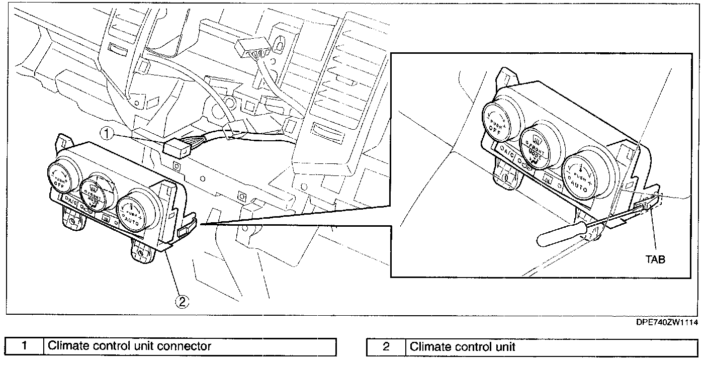 CLIMATE CONTROL UNIT REMOVAL/INSTALLATION [FULL-AUTO AIR CONDITIONER]1. Remove the battery cover.